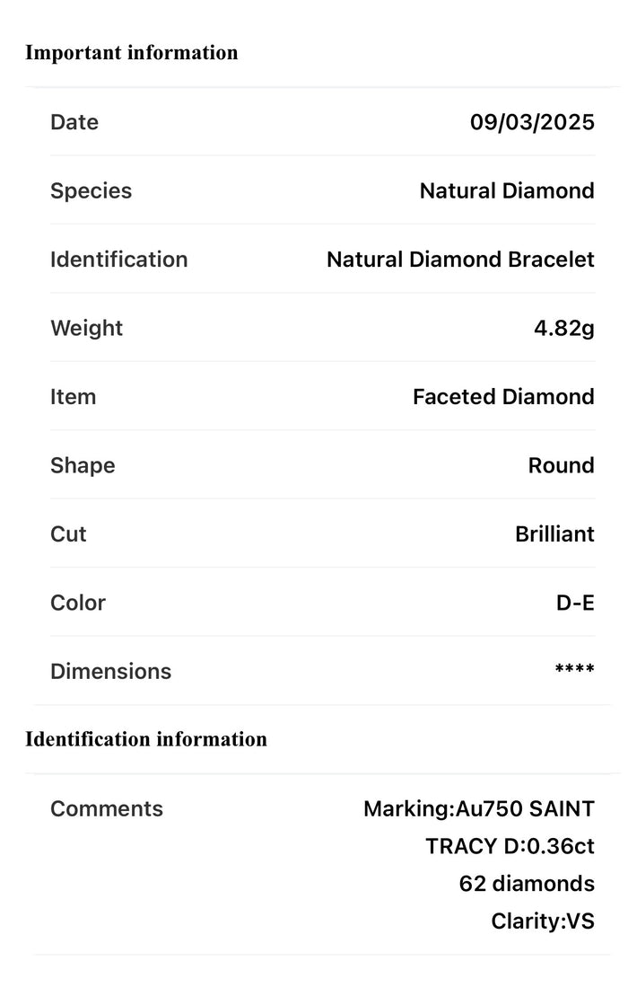- Bracelet comes with a Diamond Certificate