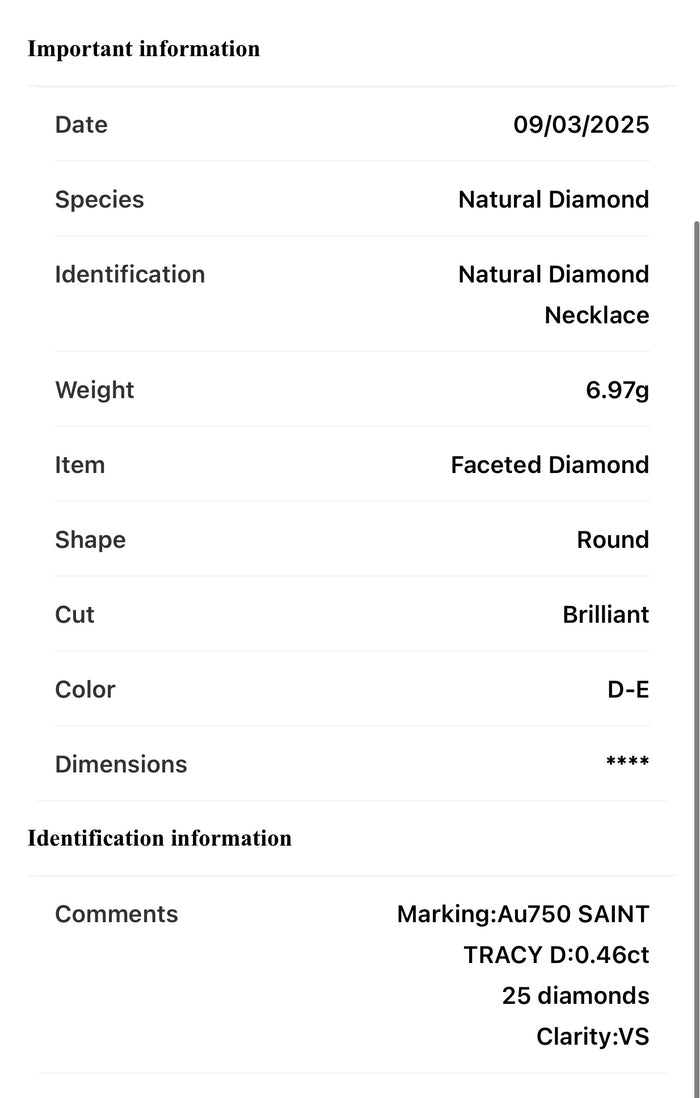 - Necklace comes with a Diamond CERTIFICATE