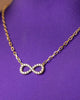 Metal 18Karat Yellow Gold Stone Material Diamond Chain thickness 2.5mm Pendant Infinity design Beautiful Necklace in 18karat gold  It features a 0.36- 0.46carat weight of VS clarity and grade “D-E” white brilliant...